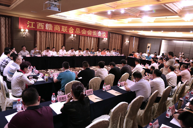 在赣商联合总会会长会议上,赣州市委常委、章贡区委书记刘文华致辞,江西省商务厅副厅长、赣商联合总会执行副会长陶莉萍通报了总会今年的重点工作,赣商联合总会会长郑跃文和江西省商务厅厅长王水平分别作了讲话。经会议讨论决定,江西赣商联合总会今年将重点做好四项工作:一是总会换届,同意成立换届工作领导小组和办公室,同意换届工作方案和会费收取意见,并一致推荐和赞同郑跃文会长连任总会下一届会长;二是动员广大赣商和各地江西商会积极参加精准扶贫工作,将重点在11个县市共捐建1000多个村卫生计生服务室,为农村群众办实事;三是筹建赣商中心,打造全国优秀赣商聚集地、大型赣商企业总部基地、中小赣商企业创新基地和南昌文化旅游新地标;四是在十一月下旬将举办的江西省第四届世界绿色发展(江西)经贸博览会期间,召开赣商回乡创业推进大会,表彰一批优秀赣商和先进江西商会。