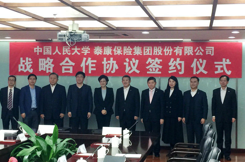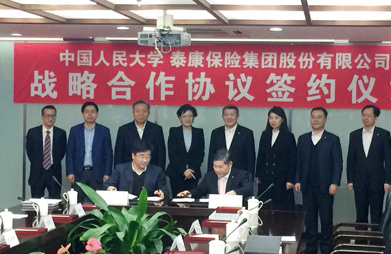 2017年1月9日, 会长单位泰康保险集团股份有限公司与中国人民大学签署战略合作协议,并向中国人民大学现场捐款1000万元。泰康保险集团董事长陈东升,泰康保险集团总裁兼 会长刘经纶,中国人民大学党委书记靳诺,校长刘伟,党委常委、副校长兼 顾问吴晓求等领导共同出席签约仪式。刘经纶会长代表泰康集团与刘伟校长现场签约。