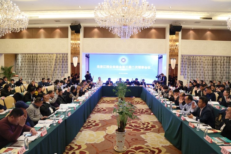 2017年12月23日, 第三届二次理事会议成功召开。江西省政府驻京办党组成员、副主任高延平,北京市民政综合执法监察大队王业涌大队长莅会指导。会议还邀请了江西省政府驻京办经济协作处处长皮建成和江西十一个地市驻京联络处主任(兼任商会名誉副会长)莅会交流。 会长刘经纶,执行会长曾钫、管飞,常务副会长章凌波、黄磊、肖民赞、邓文云、汪洪、汤苏云、潘建红、黄晓红、王才亮、王海波、范小清、林印孙、黄绍武、黎昌仁、聂驿清、敖小强、蔡阳厚、谢国栋、张恩阳、褚建庚、朱卫平、严明、汪名骕、卜海国、杨雪辉、陈文、周子涵、胡连荣、万江勇、付松山,副会长樊考平、万齐勇、张国义、张春华、范立栋、容蓉、傅卫国、魏林华、杨光、谢国栋、熊建伟、周慧生、涂根印、曾志荣、何权、廖长庚、何良、许松勤、马小青、雷振刚、刘福全、万繁、熊琦、黎良柳、王晓斌、陶斌辉、赵鹏、皮燕娟、汤煜旻、占荣海、付娣群、徐德林、谢如华、吴朝晖、林春生、高杰、付友忠等商会领导班子成员(含代表),以及商会常务理事、理事等196名代表参加会议。商会部分监事和秘书处成员列席会议。